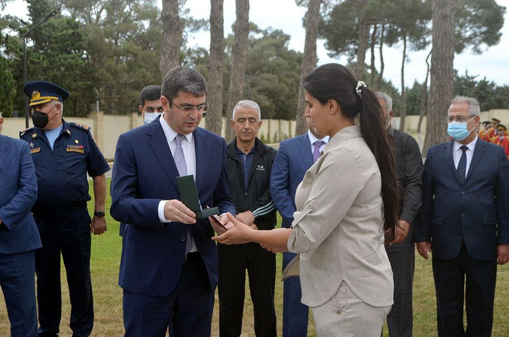 Şəhidlərin ölümlərindən sonra layiq görüldükləri medallar və Müdafiə nazirliyinin nəşri olan “Vətən müharibəsi şəhidləri” adlı kitabın nüsxələri şəhid ailələrinə təqdim edilib.