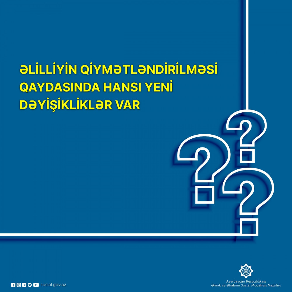 Əlilliyin müəyyən edilməsi sistemində yeni meyarların tətbiqi ilə əlaqədar Nazirlər Kabineti yeni Qərarla “Əlilliyin qiymətləndirilməsi Qaydası”nda bir sıra dəyişikliklər edib.