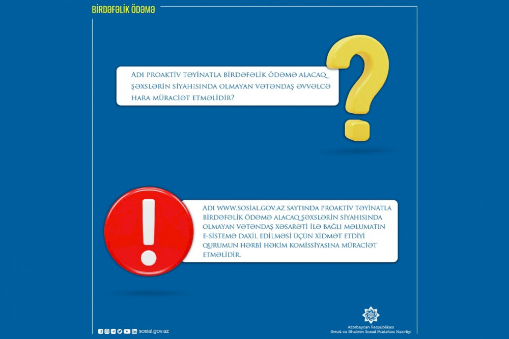 Birinci Qarabağ müharibəsi əlillərinə verilən birdəfəlik ödəmələrlə bağlı ən çox verilən SUALLAR və CAVABLAR 15:22 03.08.2022 Ölkə