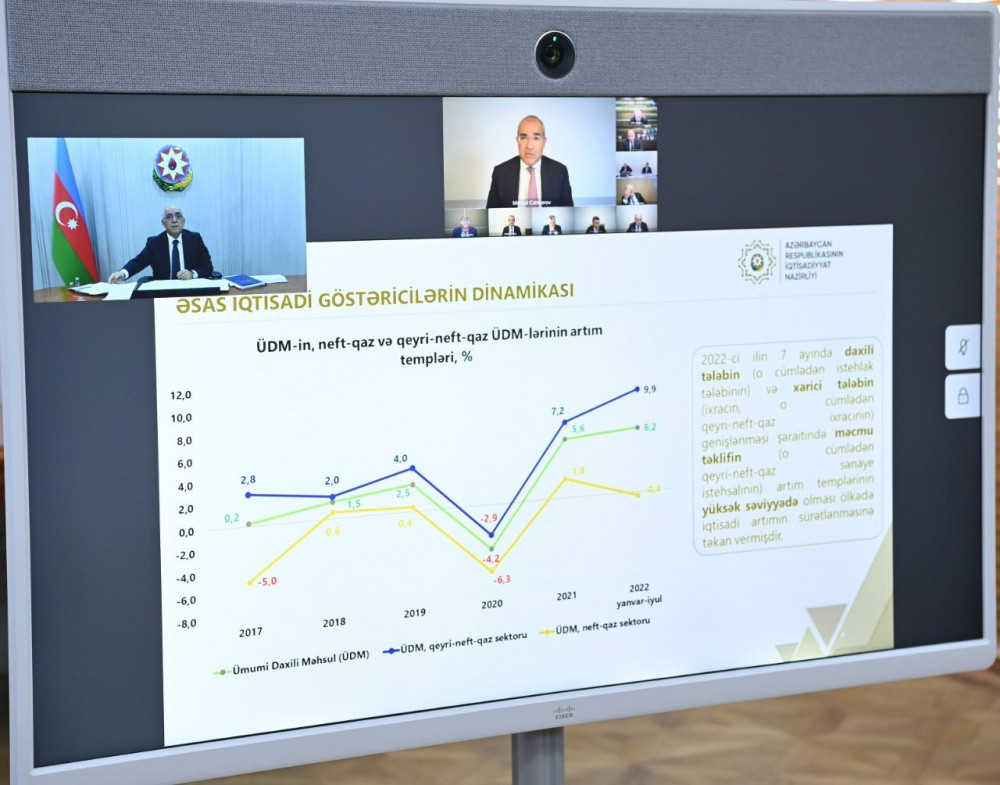 Azərbaycan Respublikası İqtisadi Şurasının sədri, Baş nazir Əli Əsədovun rəhbərliyi ilə keçirilən iclasın gündəliyində Azərbaycan Respublikası Prezidentinin 2022-ci il 22 iyul tarixli sərəncamı ilə təsdiq edilmiş “2022-2026-cı illərdə sosial-iqtisadi inkişaf Strategiyası”ndan irəli gələn tapşırıqlar, 2023-cü il və sonrakı üç il üçün dövlət və icmal büdcələrinin layihələri, büdcə qaydasının hədəfləri və əməliyyat hədəfi, ortamüddətli dövr üçün dəqiqləşmiş makroiqtisadi proqnoz göstəriciləri və digər cari məsələlər ətraflı müzakirə olunub.