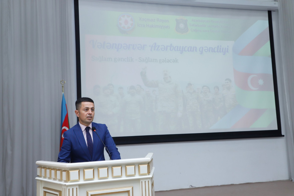 Daha sonra Xaçmaz rayon İcra Hakimiyyətinin dəstəyi ilə Heydər Əliyev Mərkəzində gənclər üçün “Vətənpərvər Azərbaycan gəncliyi – Sağlam gənclik, sağlam gələcək” mövzusunda görüş keçirilib.