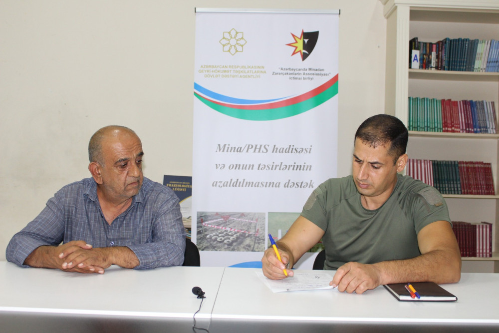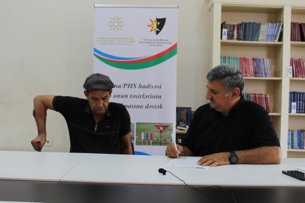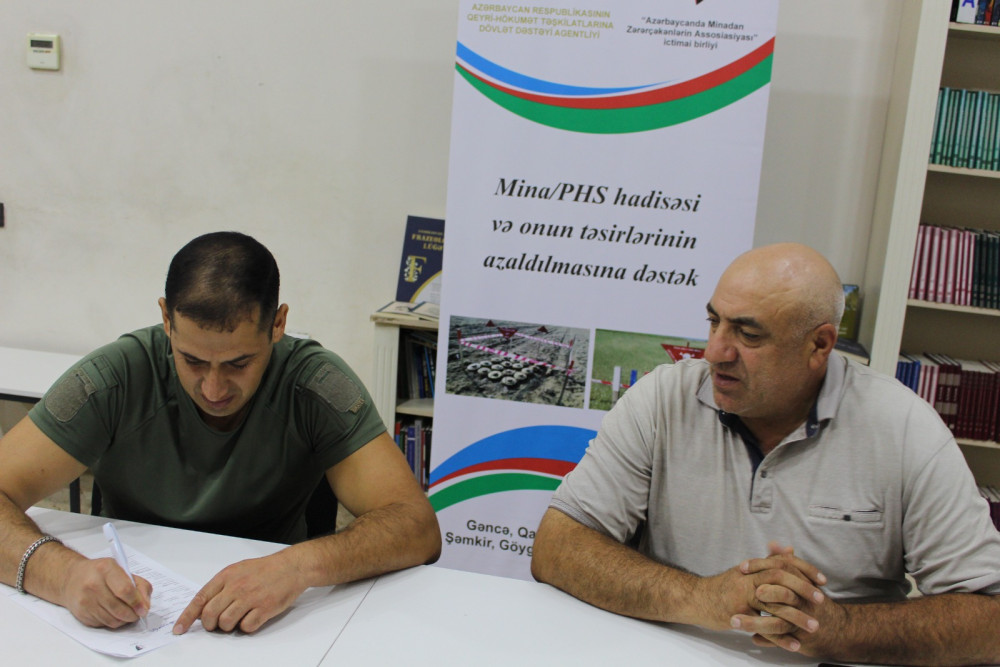 Azərbaycan Respublikasının Qeyri-Hökumət Təşkilatlarına Dövlət Dəstəyi Agentliyinin maliyyə dəstəyi ilə Azərbaycanda Minadan Zərərçəkənlərin Assosiasiyası (AMZA ) İctimai Birliyi “Mina/PHS hadisəsi və onun təsirlərinin azaldılmasına dəstək” layihəsi çərçivəsində Gəncəşəhərində da minadan zərərçəkənlərin siyahısı dəqiqləşdirilir, onların ehtiyacları öyrənilir.