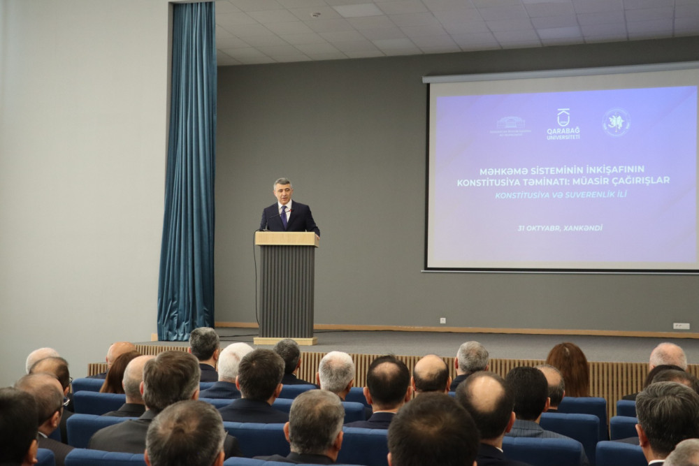 Oktyabrın 31-də Xankəndi şəhərində yerləşən Qarabağ Universitetində “Məhkəmə sisteminin inkişafının konstitusiya təminatı: müasir çağırışlar” mövzusunda konfrans keçirilib.