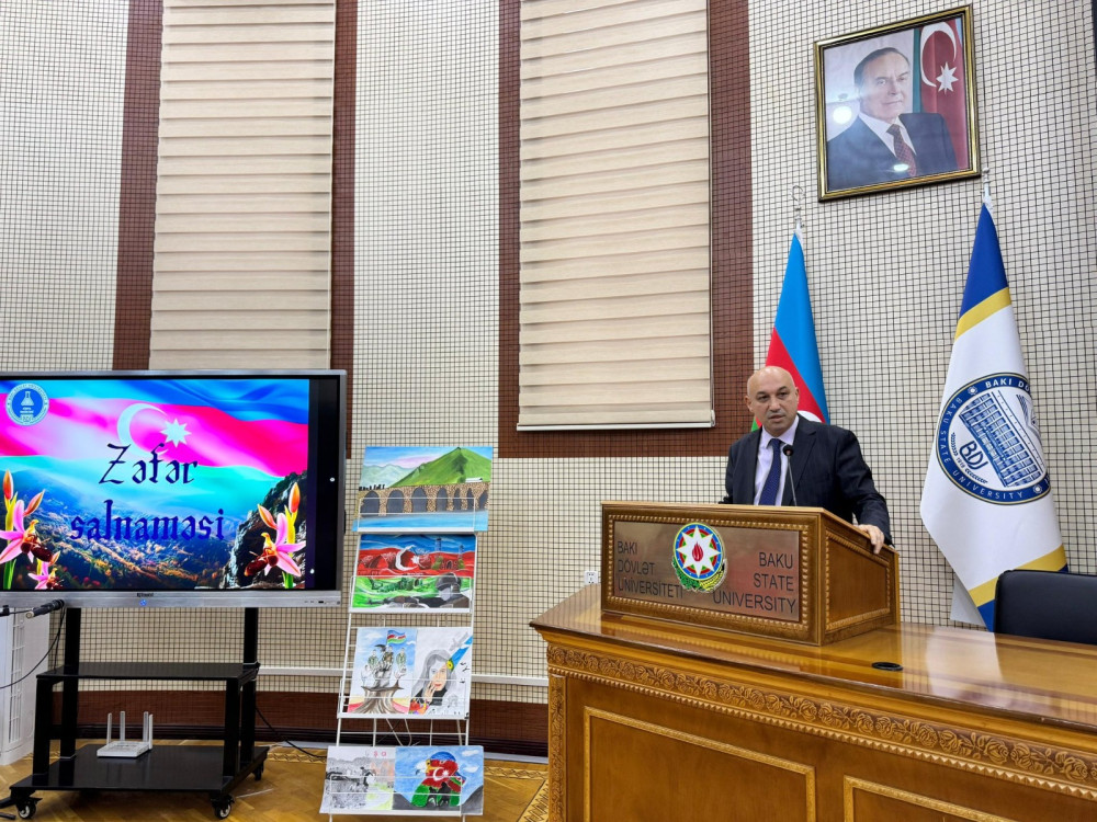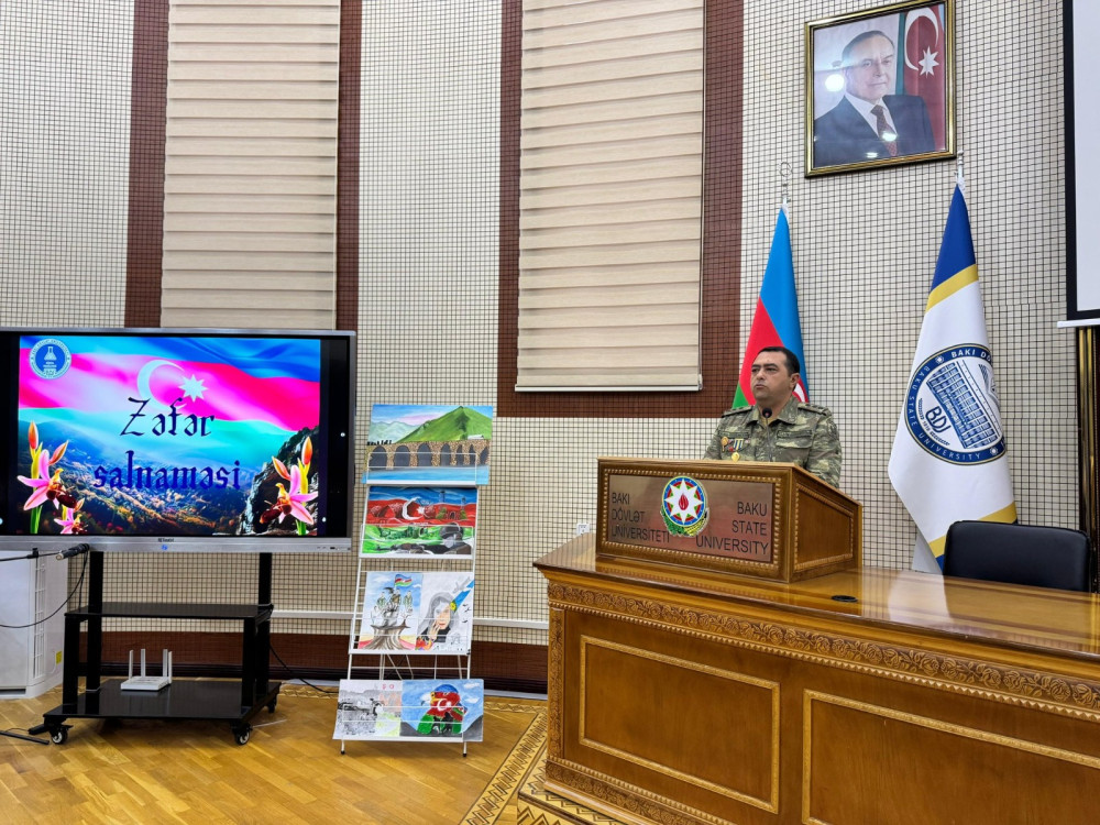 Bakı Dövlət Universitetinin (BDU) Kimya fakültəsi Tələbə Gənclər Təşkilatı (TGT) və Tələbə Həmkarlar İttifaqı Komitəsinin (THİK) birgə təşkilatçılığı ilə 8 Noyabr – Zəfər Gününə həsr olunmuş “Zəfər salnaməsi” adlı tədbir keçirilib.