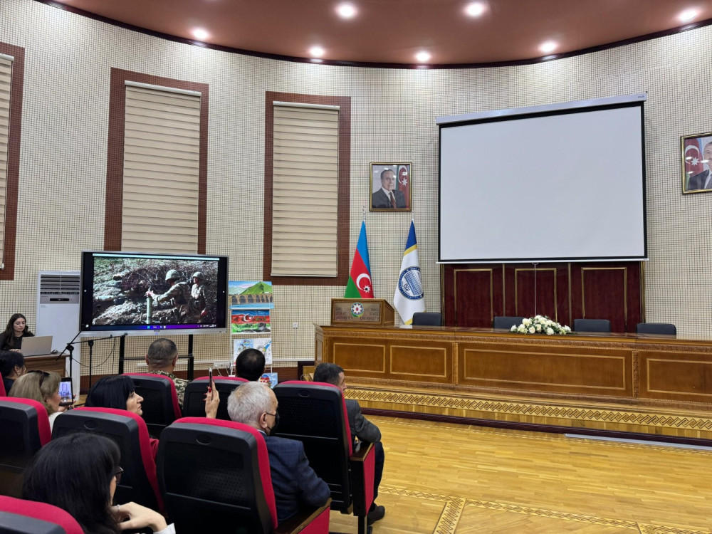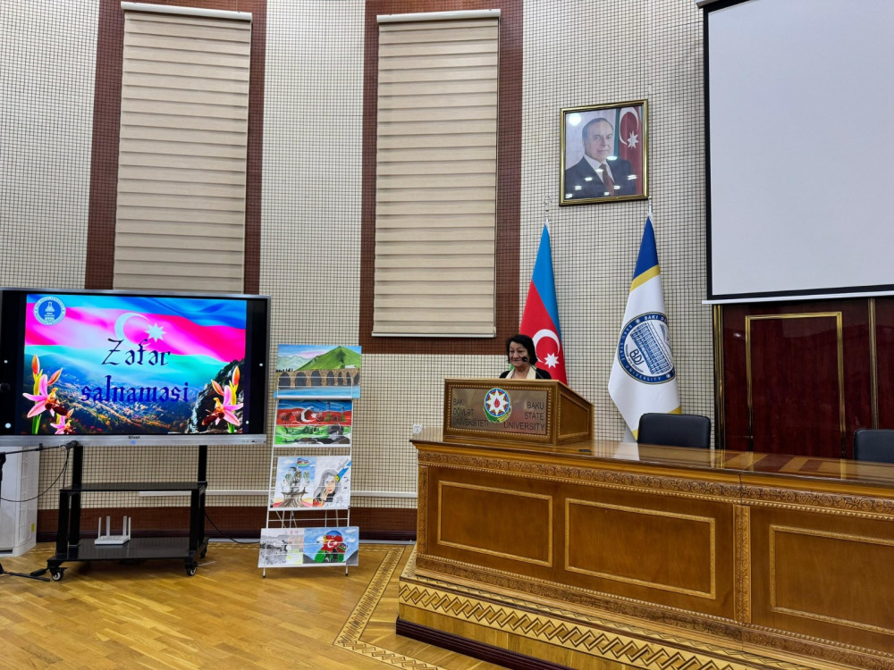 Qaziler.az bildirir ki, tədbirdə fakültə rəhbərliyi, professor-müəllim heyəti, tələbələr, Vətən müharibəsi iştirakçıları iştirak ediblər. Əvvəlcə Dövlət himni səsləndirilib, torpaqlarımızın azadlığı uğrunda həlak olmuş şəhidlərimizin əziz xatirəsi bir dəqiqəlik sükutla yad edilib.