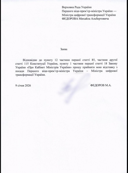Ukrayna Baş nazirinin birinci müavini və Rəqəmsal Transformasiya naziri Mixaylo Fedorov və müdafiə naziri Denis Şmıqal istefa ərizələrini təqdim ediblər.