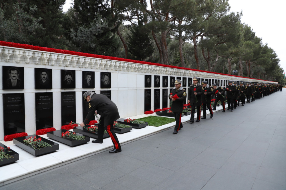 Azərbaycanın azadlığı uğrunda canlarından keçmiş Vətən övladlarının müqəddəs xatirəsi ehtiramla yad edilib, məzarlarına qərənfillər düzülüb.