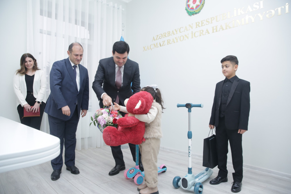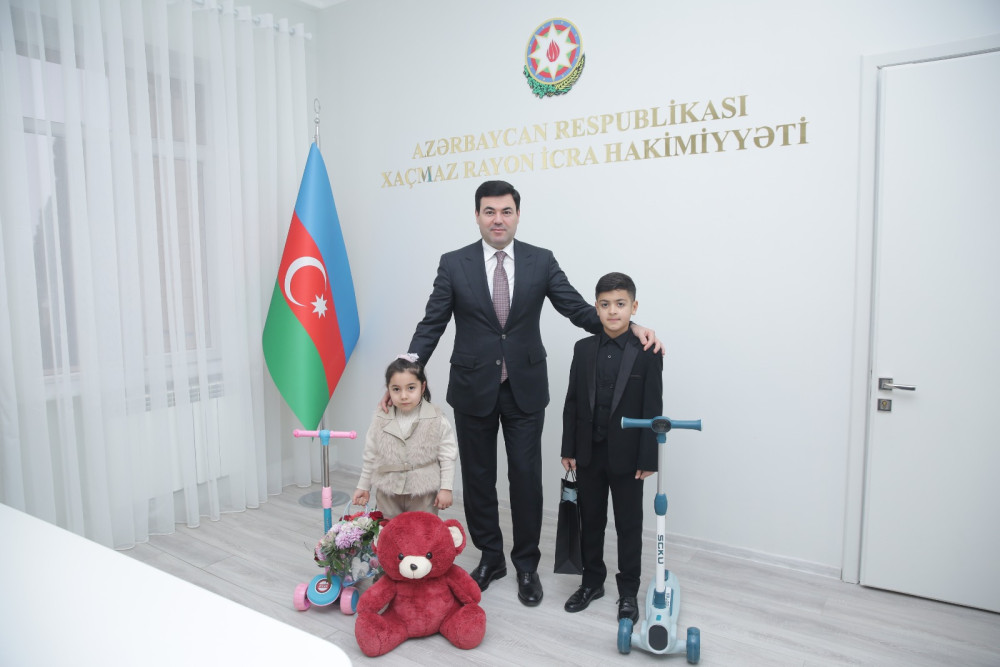 Trend xəbər verir ki, icra başçısı şəhid Vüsal Rüstəmovun oğlu Şahin Rüstəmovu 10, şəhid Elvin Qayıbovun qızı Nur Qayıbovanı isə 5 yaşı tamam olması münasibətilə təbrik edib, onlara xoş arzularını çatdırıb.