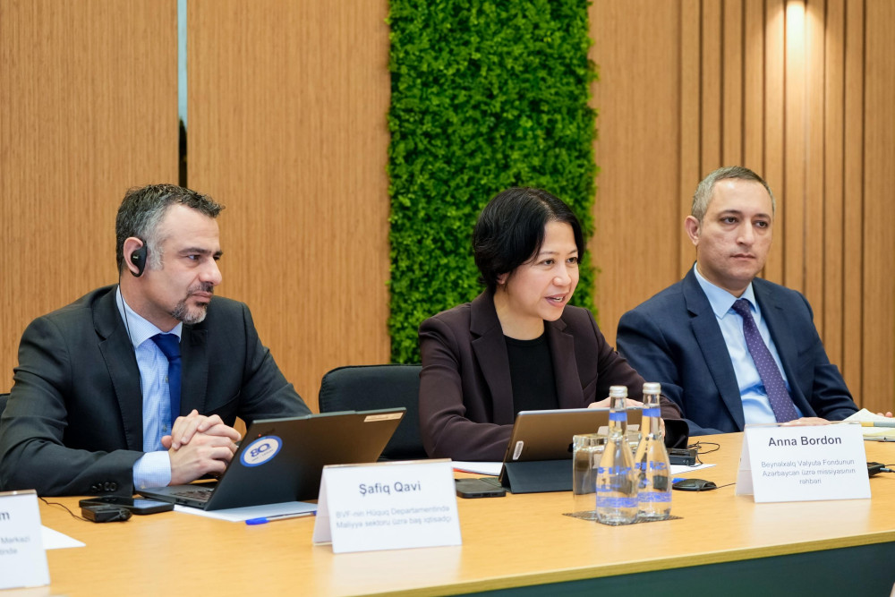 Daha sonra əmək və əhalinin sosial müdafiəsi nazirinin müavini Rəşad Mustafayevin iştirakı ilə keçirilən görüşdə Beynəlxalq Valyuta Fondunun nümayəndə heyəti tərəfindən Azərbaycanın əmək bazarının təhlilinə dair təqdimat edilib.