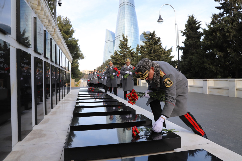 Daha sonra Şəhidlər xiyabanında Azərbaycanın müstəqilliyi və ərazi bütövlüyü uğrunda canlarından keçmiş Vətən övladlarının unudulmaz xatirəsi yad edilib, "Əbədi məşəl" abidə kompleksinin önünə əklil qoyulub.