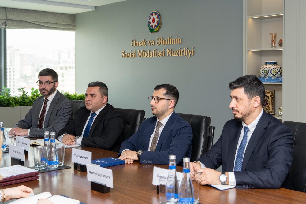 Əmək və əhalinin sosial müdafiəsi naziri Anar Əliyev Nazirlikdə Mentorluq Proqramını uğurla başa çatdıran dördüncü “Yüksəliş” müsabiqəsi qalibləri Nicat Qocayev, Eyyub Fətəliyev və növbəti 1 il ərzində Mentorluq Proqramına cəlb ediləcək beşinci “Yüksəliş” müsabiqəsi qalibləri İrşad Əsgərxanlı və Qoşqar Daşdiyev ilə görüşüb.