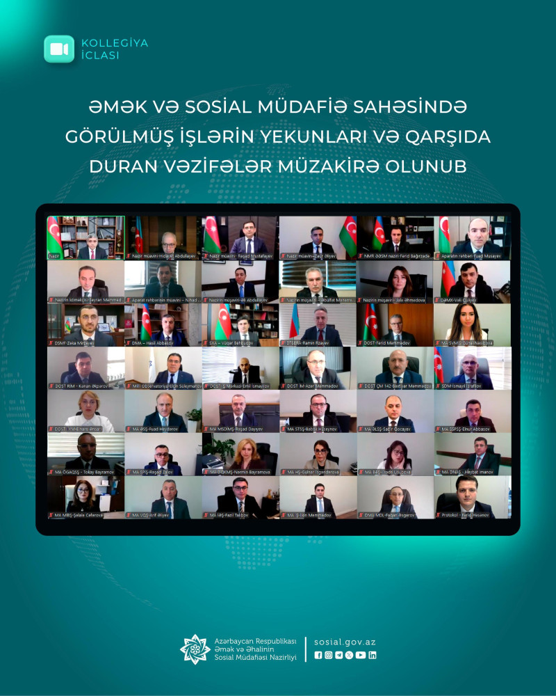 Ötən dövrdə pensiya təyinatlarının proaktiv qaydada aparılması işlərindən bəhs olunub, qarşıdakı dövrdə də Nazirlik tərəfindən sosial xidmətlərin elektronlaşırılması işlərinin davam etdiriləcəyi, proaktiv qaydada təyin edilən sosial ödəniş növlərinin əhatə dairəsinin genişləndiriləcəyi bildirilib. İclasda habelə beynəlxalq əlaqələr, daxili nəzarət və audit sahələrində görülən işlər və qarşıda duran vəzifələr müzakirə olunub.