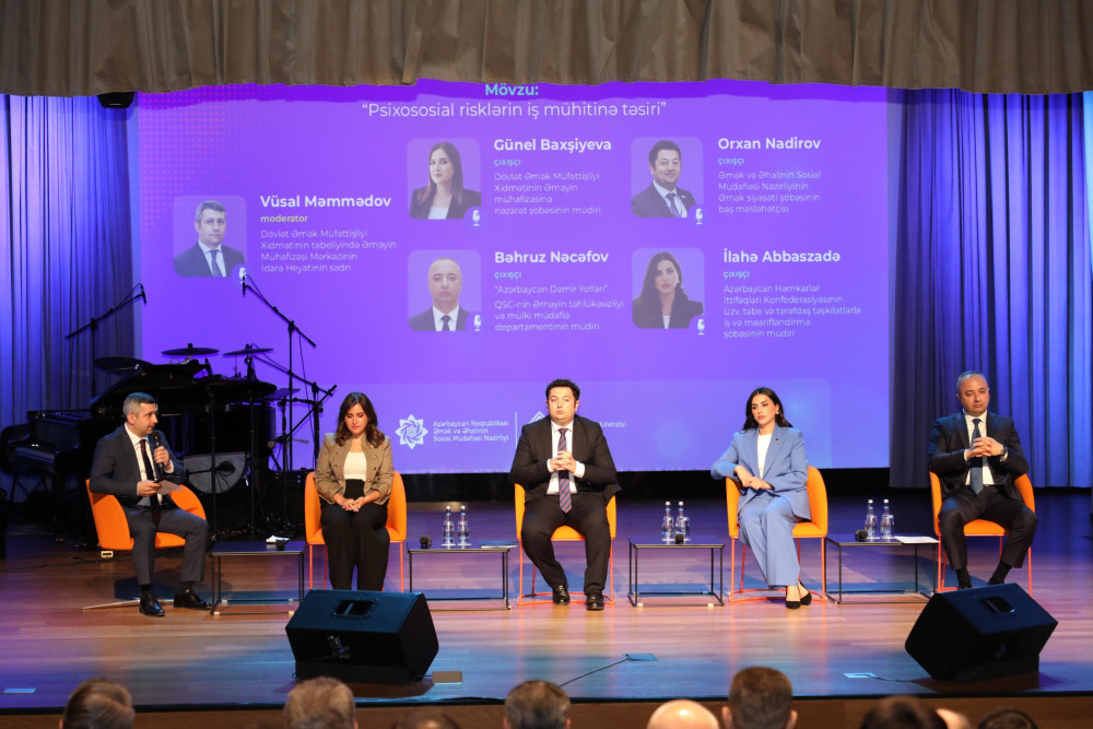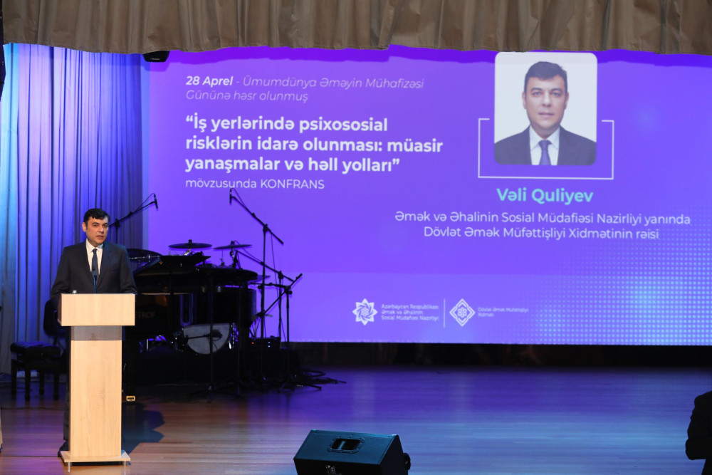 Əmək və Əhalinin Sosial Müdafiəsi Nazirliyi yanında Dövlət Əmək Müfəttişliyi Xidməti 28 Aprel - Ümumdünya Əməyin Mühafizəsi Günü ilə əlaqədar “İş yerlərində psixososial risklərin idarə olunması: müasir yanaşmalar və həll yolları” mövzusunda konfrans keçirib.