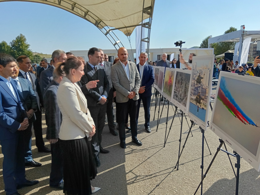 AZƏRTAC-ın bölgə müxbiri xəbər verir ki, əvvəlcə Cəbrayıl Şəhəri Gününə həsr edilən "Qarabağ - obyektivdən tarixə" adlı sərgiyə baxış keçirilib. Fotosərgidə Qarabağa, Azərbaycan Silahlı Qüvvələrinə və Cəbrayıla həsr olunan fotolar yer alıb.