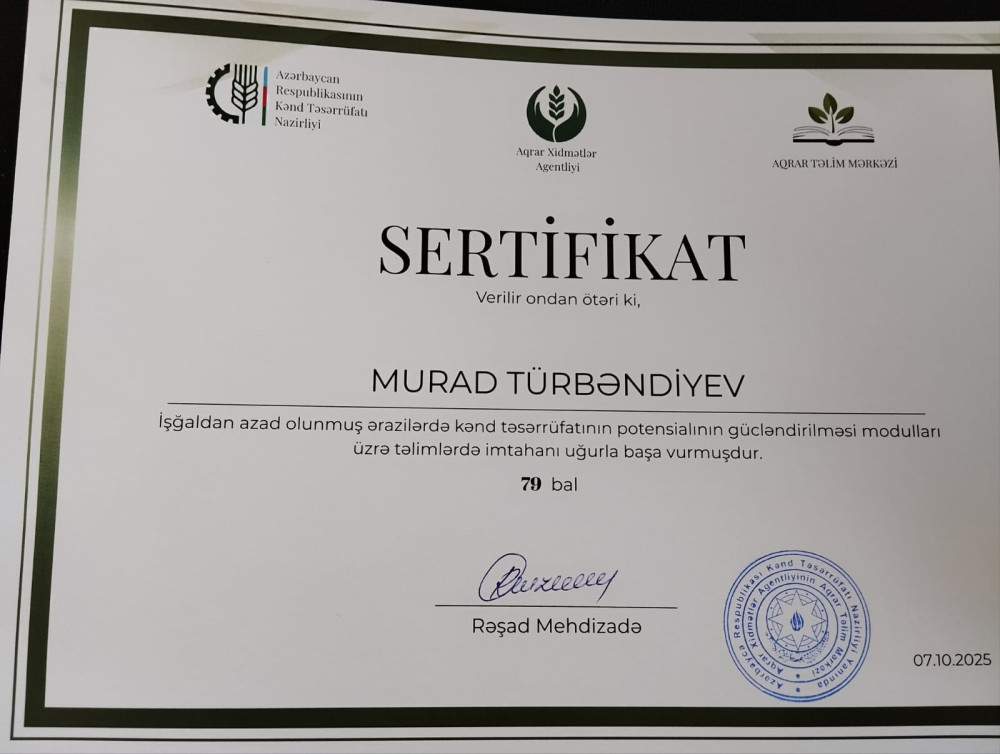 Xankəndi şəhərində, Ağdərə və Xocalı rayonlarında Bərpa, Tikinti və İdarəetmə Xidmətinin ictimaiyyətlə əlaqələr şöbəsindən Qaziler.az-a verilən məlumata görə, kənd sakinlərinin elektron müraciətləri əsasında Kənd Təsərrüfatı Nazirliyi tərəfindən maarifləndirici təlimlər təşkil edilib. Təlimlər zamanı iştirakçılara səmərəli təsərrüfatçılıqla bağlı vacib tövsiyələr verilib. Təlimlərdə fərqlənən sakinlərə sertifikatlar da təqdim olunub.