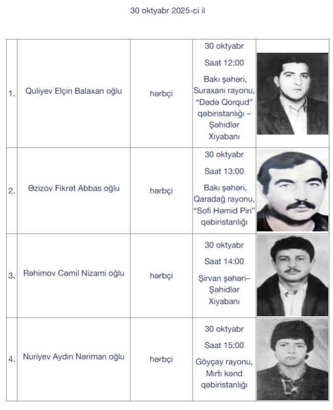 Birinci Qarabağ müharibəsində itkin düşdüyü hesab edilən və şəxsiyyəti müəyyənləşdirilən daha 16 şəhid dəfn olunacaq.