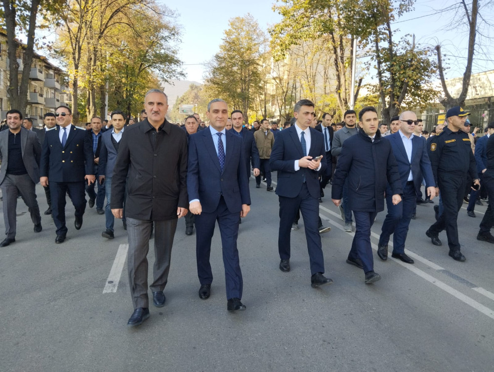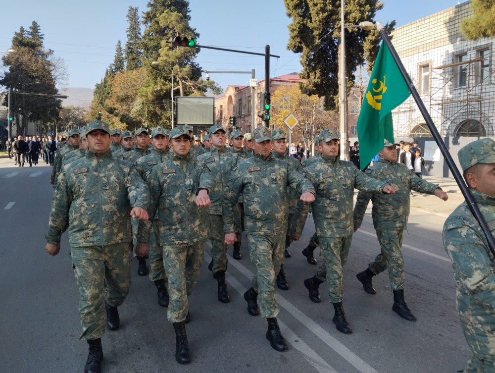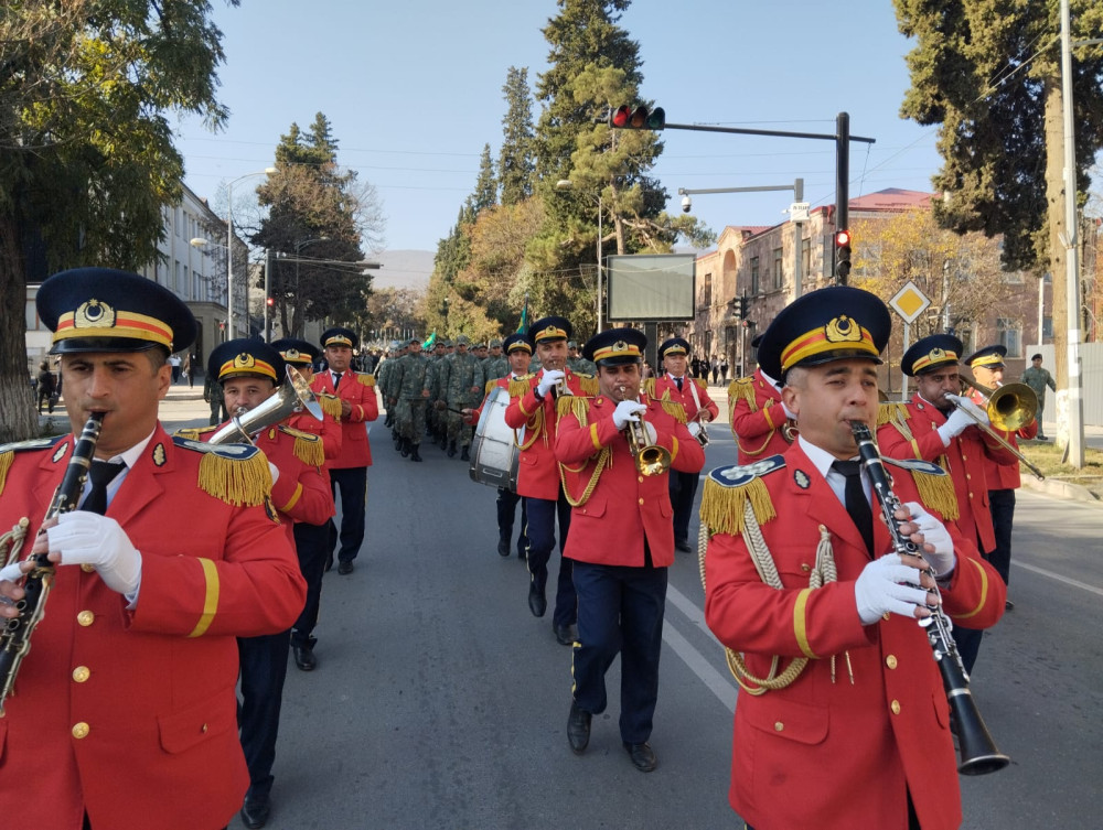 Xankəndi şəhərində, Ağdərə və Xocalı rayonlarında Bərpa, Tikinti və İdarəetmə Xidmətinin ictimaiyyətlə əlaqələr şöbəsindən Qaziler.az-a verilən məlumata görə, şəhərin mərkəzi küçəsində hərbi orkestrlərin müşayiəti ilə təşkil olunan yürüş bayram ab-havası yaradıb. Azərbaycan Silahlı Qüvvələrinin hərbi orkestri tərəfindən səsləndirilən vətənpərvər musiqilər yürüşə xüsusi ruh verib.