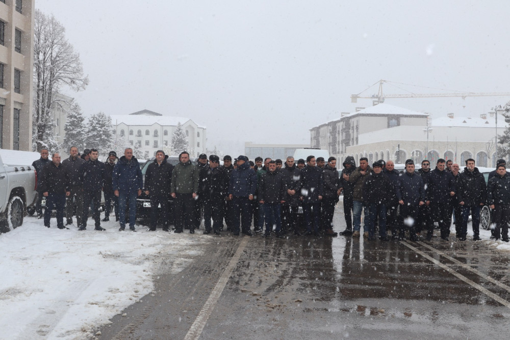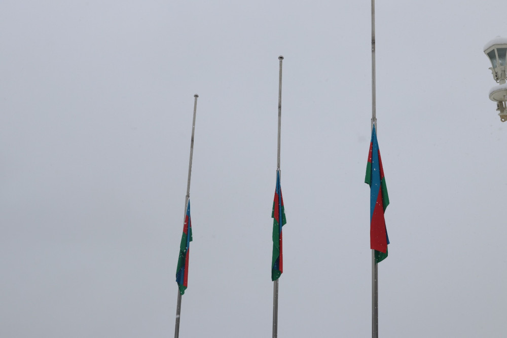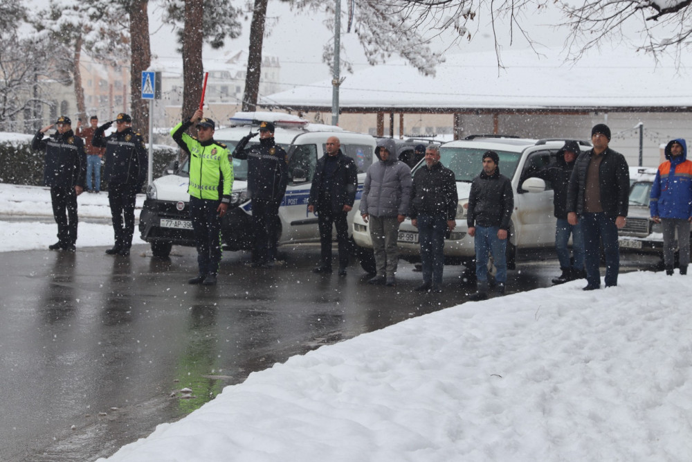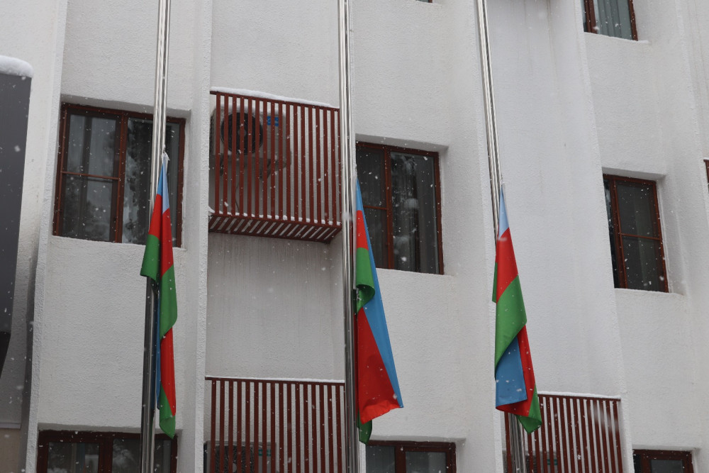 Şəhərdə nəqliyyatın və piyadaların hərəkəti dayandırılıb. Avtomobillərin siqnal səsi ilə şəhidlərimiz anılıb. Bayraqlar yarıya qədər endirilib.