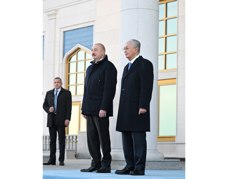 Dövlətimizin başçısını Qazaxıstan Respublikasının Prezidenti Kasım-Jomart Tokayev qarşılayıb.