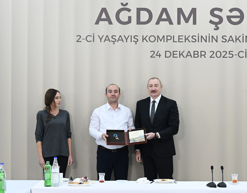 Azərbaycan Respublikasının Prezidenti İlham Əliyev və birinci xanım Mehriban Əliyeva dekabrın 24-də Ağdam şəhərində 2-ci yaşayış kompleksinin açılışında iştirak edib və buraya köçən sakinlərlə görüşüblər.