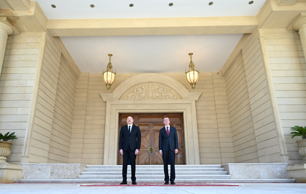 Azərbaycan Prezidenti İlham Əliyev Latviya Prezidenti Edqars Rinkeviçsi qarşıladı.