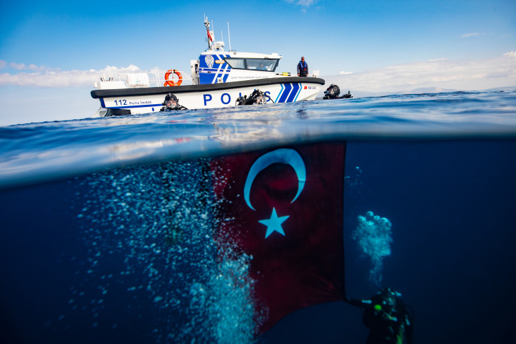 İzmirdə dəniz polisi su altında Türkiyə bayrağını açdı - FOTO backend